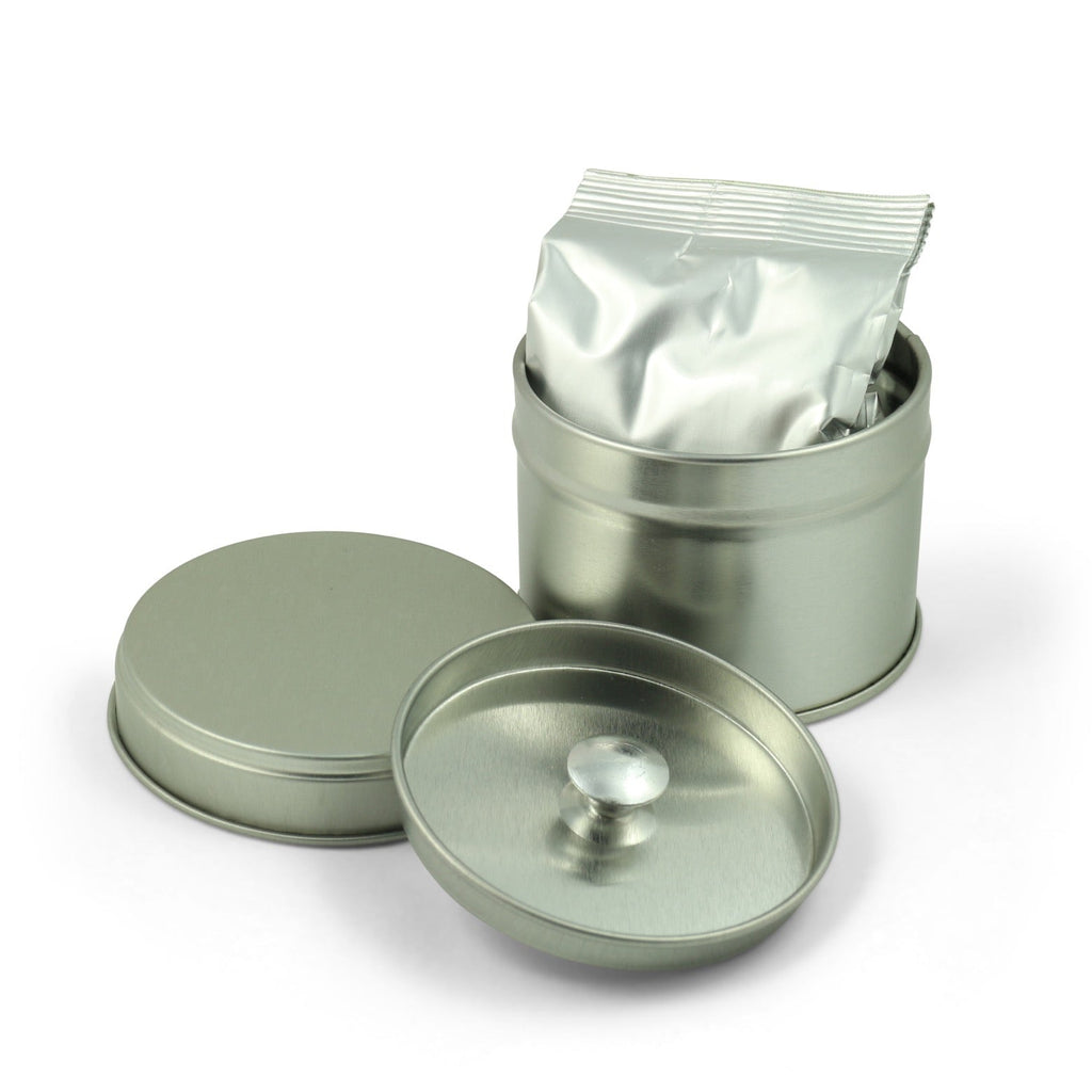 Comes in a 20-gram sealed aluminium pouch, optionally with a tin can for airtight storage after opening.