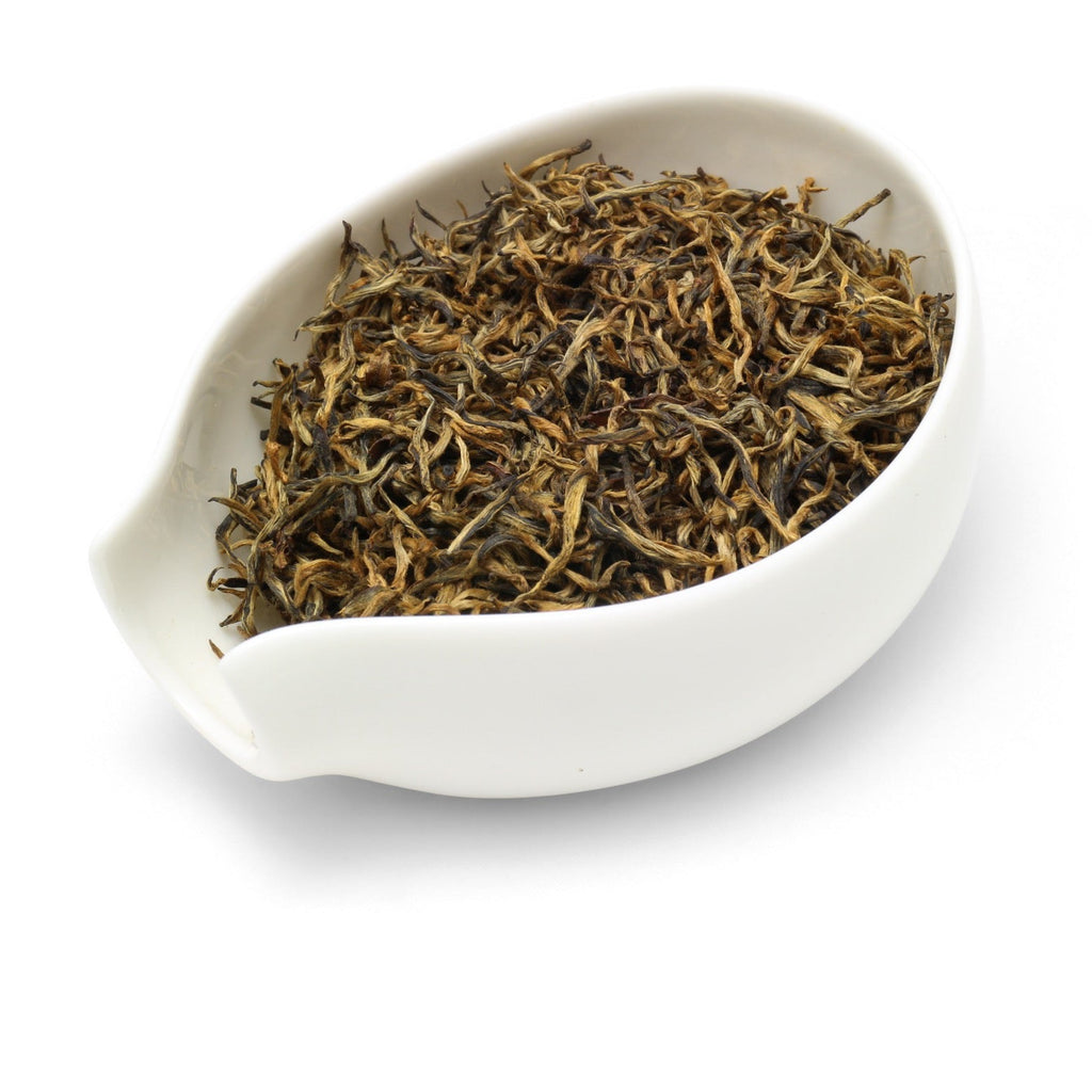 A newcomer varietal with characteristic golden buds, Jin Jun Mei was developed in 2005 in Tongmuguan, forbidden to outsiders and nestled in the same almost-inaccessible, mountainous corner of Wuyishan that also produced Lapsang Souchong. Considered one of the pinnacles of Chinese black teas, it has been the subject of much hype since its creation, and other than beginning oxidation by shaking, a technique usually reserved for oolong production, the special steps in its processing have been kept a closely-guarded secret.