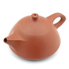 A pot shaped like a leaf must be an alphabet for tea. At first glance one notices the popular shi piao (ladle) form; a wide and flat base suitable for long tea leaves and compressed pu’er, along with a sturdy ovate handle that adorns it. The artist has made efforts to stretch the red clay in lyrical fashion, masking the corners of the body, the neckline, and closing off the lid to an almost invisible seal. The silence is broken, and as if in concentrated effort the spout casts forward, its four sides rising up like a stratovolcano, until a jet of tea streams into the beholder’s cup.